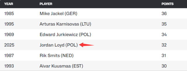 自1987年泽利格对阵捷克队砍下33分后,他成为40多年来欧洲杯单场得分最高的波兰球员。全场比赛洛伊德三分球8投7中,引领波兰队打出惊艳的外线表现:波兰全队三分球26投14中,命中率高达53.8%,正是这样的进攻火力助他们完成爆冷。